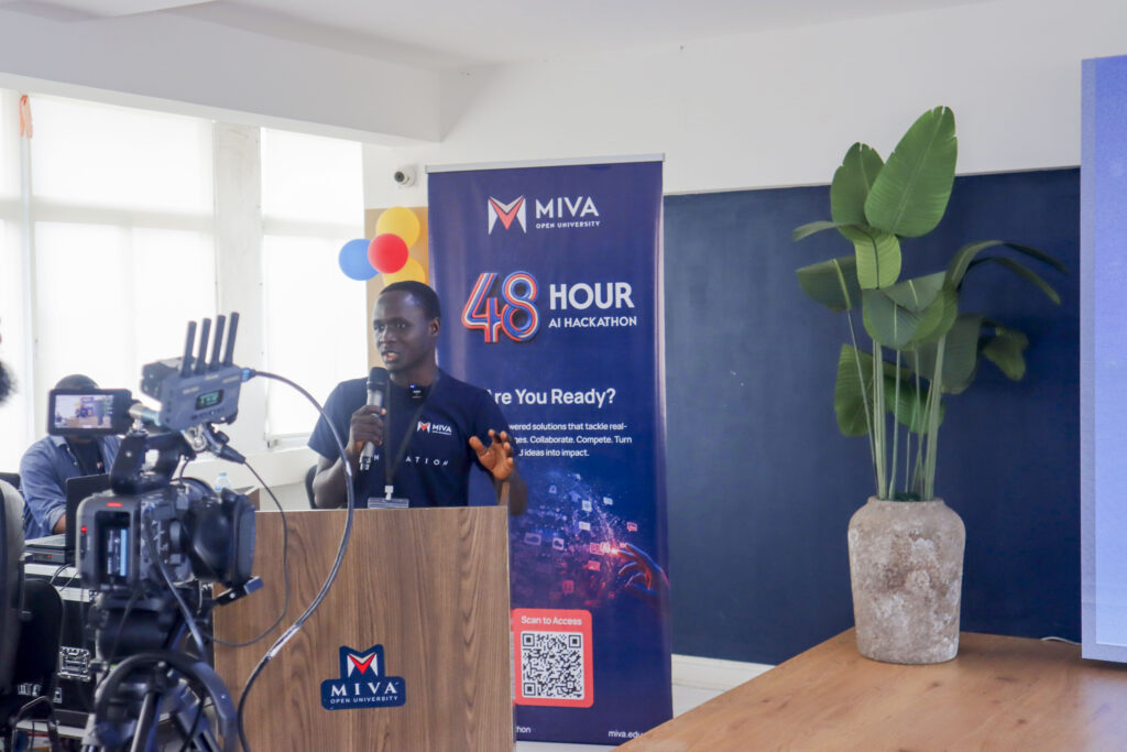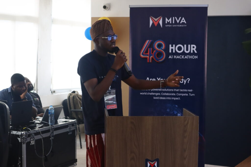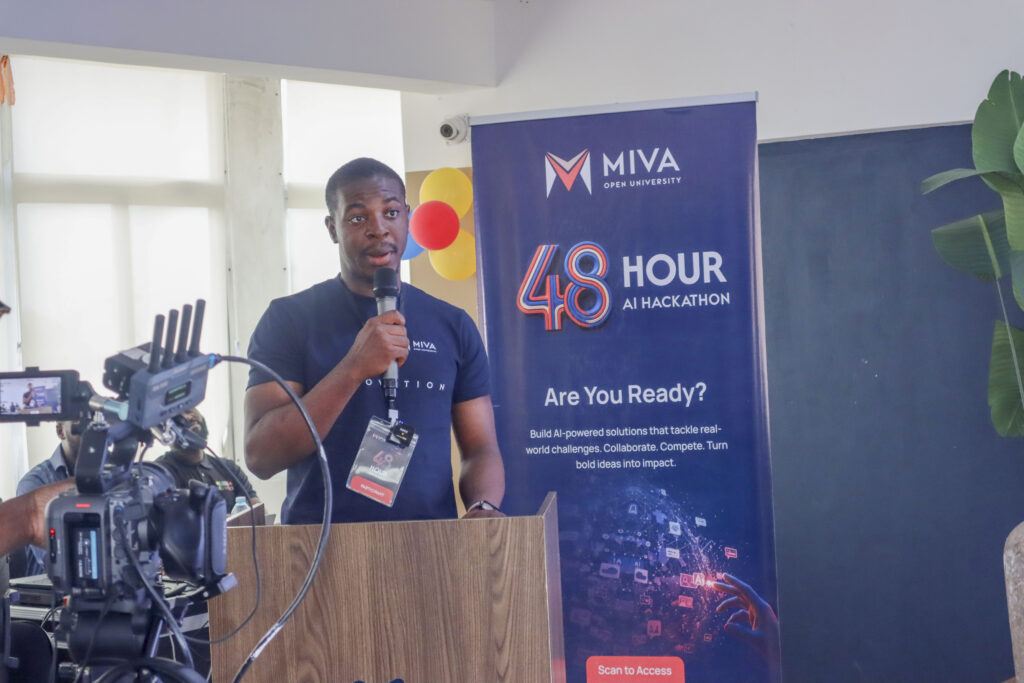 AyoOluwa Nihinlola, Chief Content Officer of the uLesson Group, during his opening remarks at Miva’s first AI Hackathon.